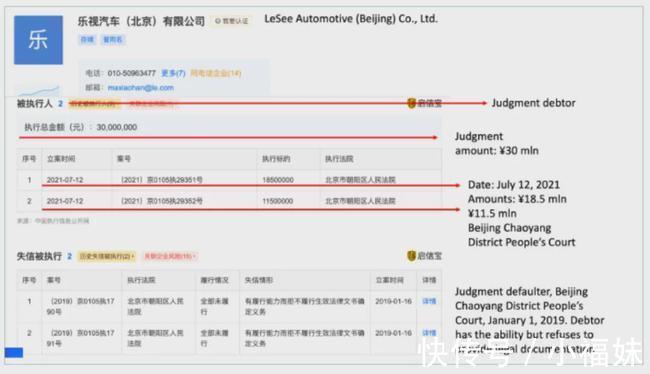 报告通过纽约南区法院、洛杉矶县高级法院官网、中国仲裁网、Jus Mundi、Pacer、天眼查、企查查、启信宝等官方或第三方网站对FFIE及其相关公司的涉讼涉罚情况进行了查询。